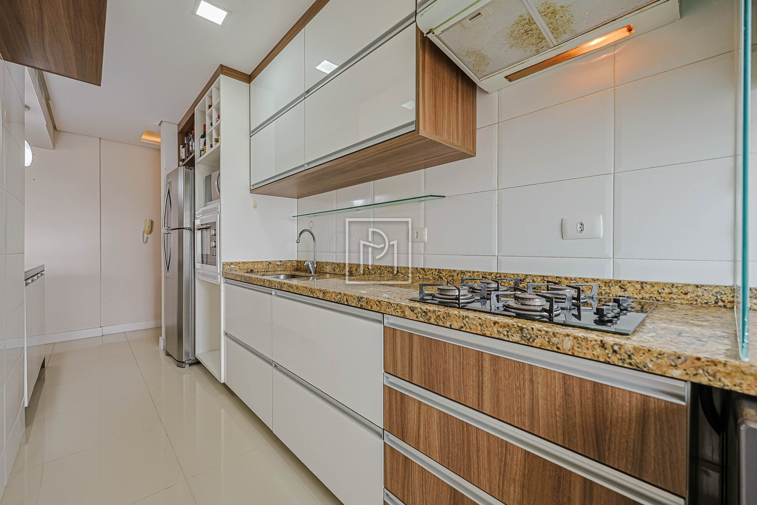 Cozinha com móveis de ótimo padrão, coifa, cooktop e infra para lava louças.